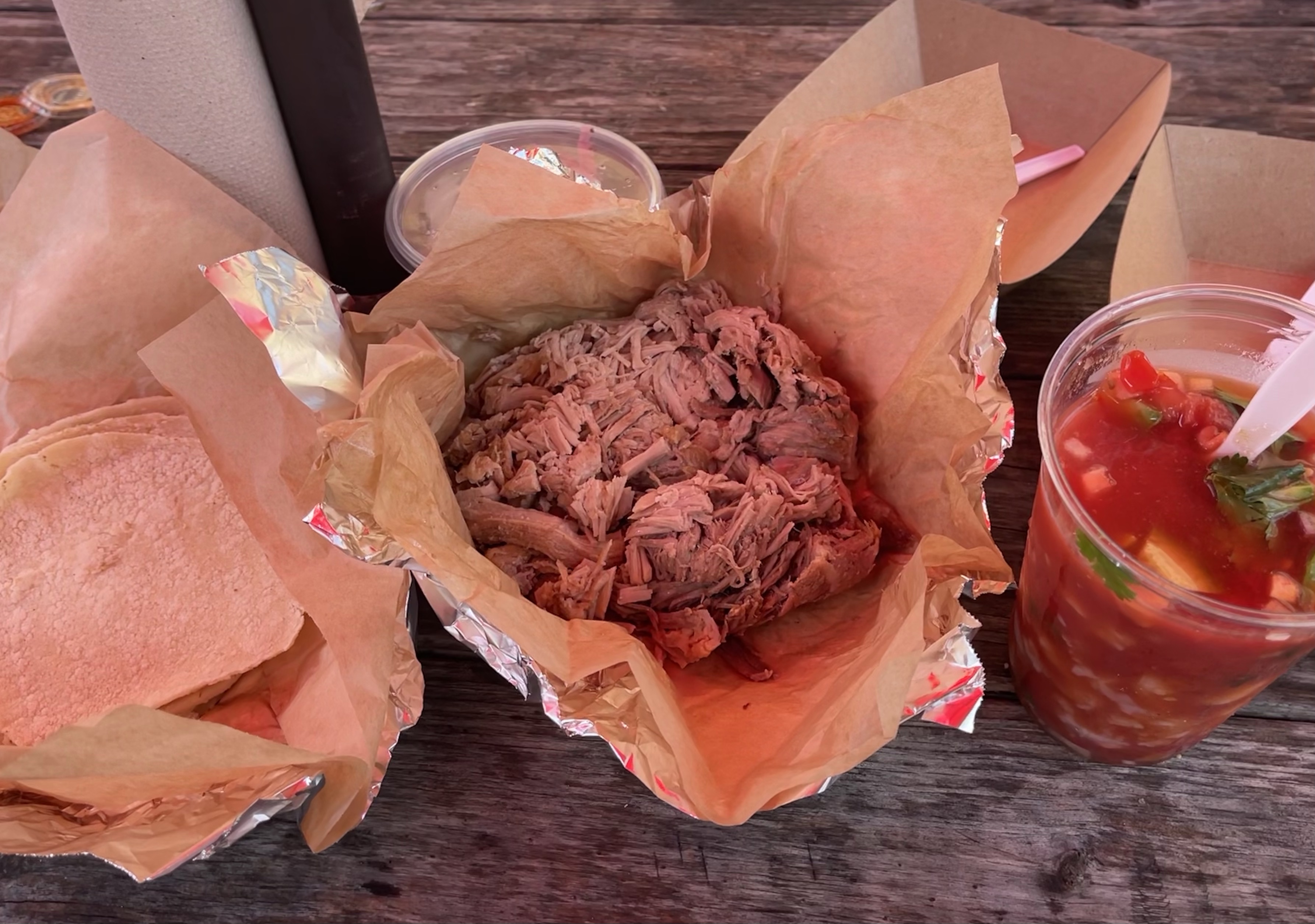 If you want to go somewhere with great carnitas go to Carnitas Lonja in beautiful San Antonio. You can order from two different buildings because one of the buildings is for seafood and the other one is for carnitas and the seating is outdoors. You can even bring your pet because it is all outdoors. I got some delicious carnitas which were made from pork. My parents got aguachile which is Texas gulf shrimp with chile sauce on it. I also got a cheesy quesadilla. My parents got an agua fresca and I got a delicious, cold Mexican coke. I hope you enjoyed hearing about Carnitas Lonja. Please make sure to check it out!